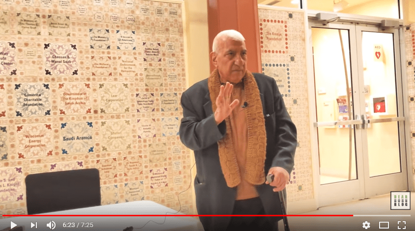 السابعة مساء وقف الدكتور حسن بزي ليرحب بالجمهور ويعلن فقرات برنامج المساء وهو محاضرة للاستاذ حيدر مازن وقراءات لأسيل سرور في محمود درويش وقصائد للشاعرة اباء اسماعيل قصائد للشاعرة زمان الصائغ قصائد للشاعرة هلا شرارة قصائد لعلي السندي وكانت الأمسية جذابة خلابة وتعلم ان وراء هذه الامسية جماعة المنتدى الثقافي في ديربورن وفي الصميم الشاعر المقالي الدبلوماسي المخضرم دكتور علي العجمي والفنان الشاعر الدؤوب حسام شرف الدين والشاعر الناشط علي السندي ولهؤلاء طريقة في اجتذاب المعنيين بالثقافة وقد حضر هذه الامسية الشاعرة الاكاديمية الدكتورة دجلة السماوي صاحبة صالون دجلة السماوي وقناة دجلة ثم الشاعرة اللبنانية البارعة والمقالية الساطعة فاطمة الزين هاشم والناشط الأديب الدكتور محمد ناصر والدكتور الاديب جمال الغانم والاديب المترجم كامل عويد العامري والشاعر المصيفي الركابي والشاعر جابر الشكرجي والروائي السعودي فراس بن مهنا اللامي مبدع رواية سعودي في مشيغن ومبدع رواية ديترويت والناشط الاستاذ غضنفر الكندي وعدد كبير ممن فاتتني اسماؤهم وفيما يلي نجمات حول الامسية :