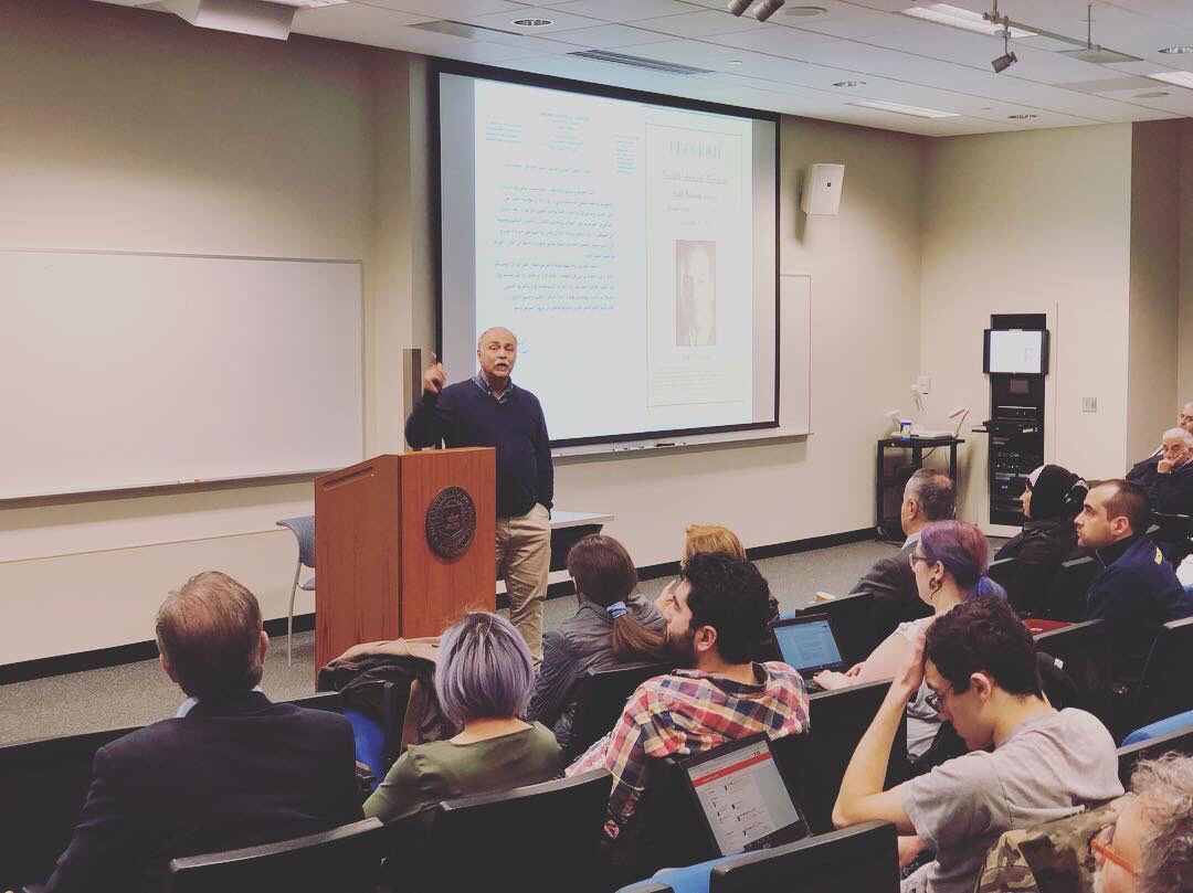د. هاني باوردي أثناء المحاضرة في «جامعة ميشيغن-ديربورن»