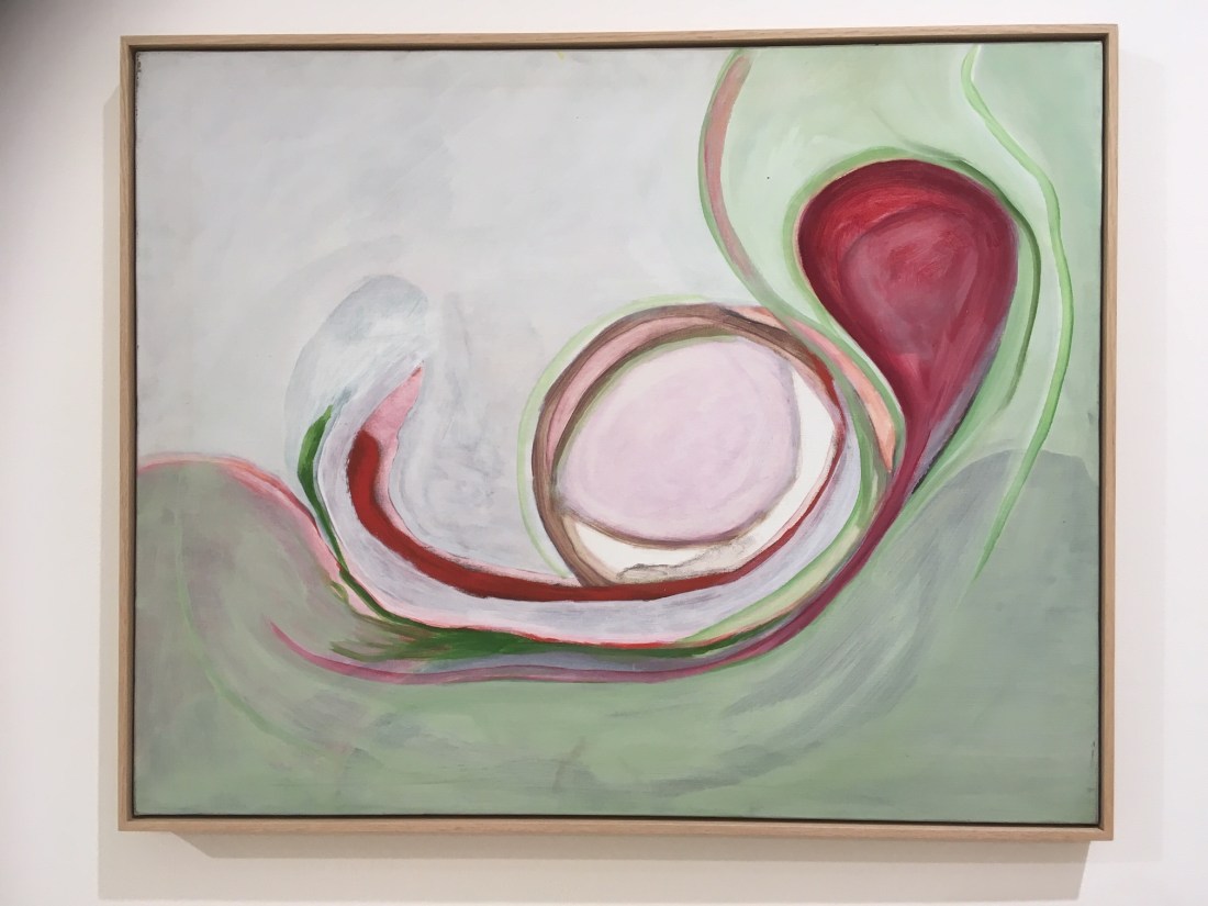 As I moved through the eight halls devoted to stages of Fattal’s work—collage, canvas paintings, work on paper, ceramic and glazed terracotta, I found her sculpted pieces particularly compelling. Many are rather whimsical; although they initially appear somber. The overriding impression from these sculptures is of movement and ‘becoming’; while the striking paintings and collages evoke contemplation, for me. Even Fattal’s stark back and white lies on canvas are heavy with deliberation.