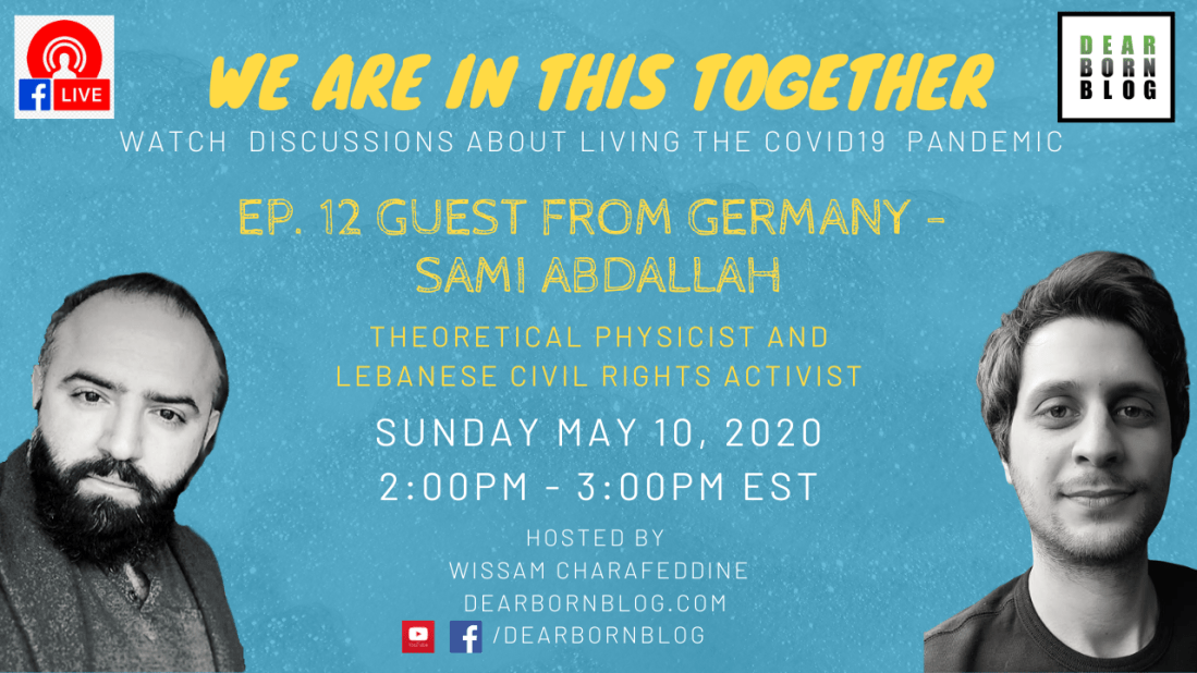 We are in this together is a non-scripted, live, non-profit, broadcast by Dearborn Blog, hosted by Wissam Charafeddine, to have conversations, that become oral history records, of our lives during the COVID19 pandemic also known as coronavirus Pandemic. These are personal stories of our lives during these unprecedented social isolation measures, in a globalized world.