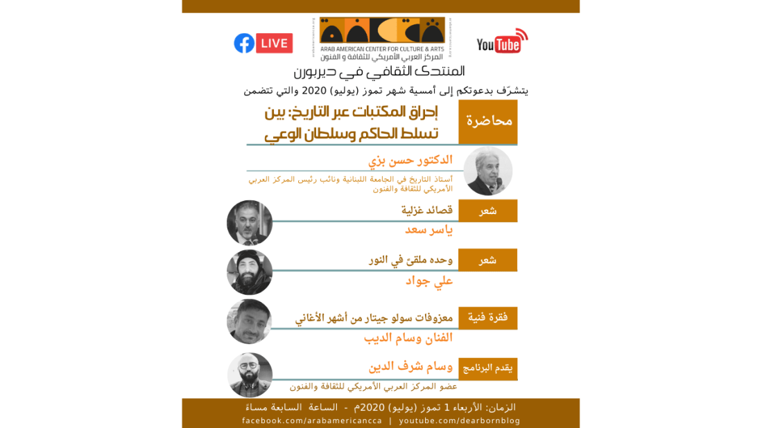 المنتدى الثقافي في ديربورن يقدم أمسية شهر تموز 2020م [podcast/video]