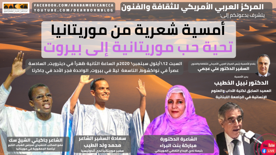 المركز العربي الأمريكي للثقافة والفنون يقدم أمسية شعرية من موريتانيا بعنوان: تحية حب موريتانية إلى بيروت [podcast/video]