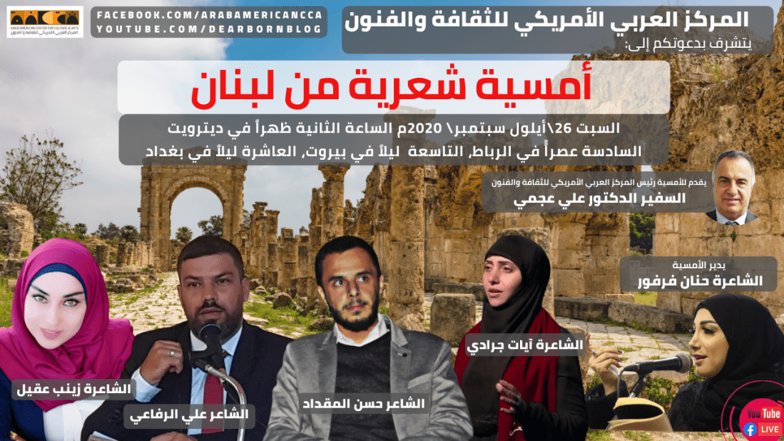 المركز العربي الأمريكي للثقافة والفنون يقدم أمسية شعرية من لبنان: حنان فرفور تقدم على الرفاعي، زينب عقيل، آيات جرادي، وحسن المقداد[podcast/video]