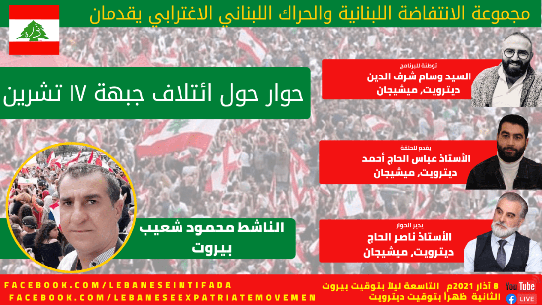 الحراك اللبناني الاغترابي والانتفاضة اللبنانية يقدمان: حوار حول ائتلاف جبهة 17 تشرين