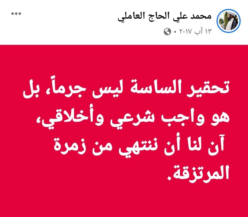 الحراك الاغترابي اللبناني يقدم: الشيخ محمد علي الحاج العاملي والموقف الشيعي من الثورة اللبنانية