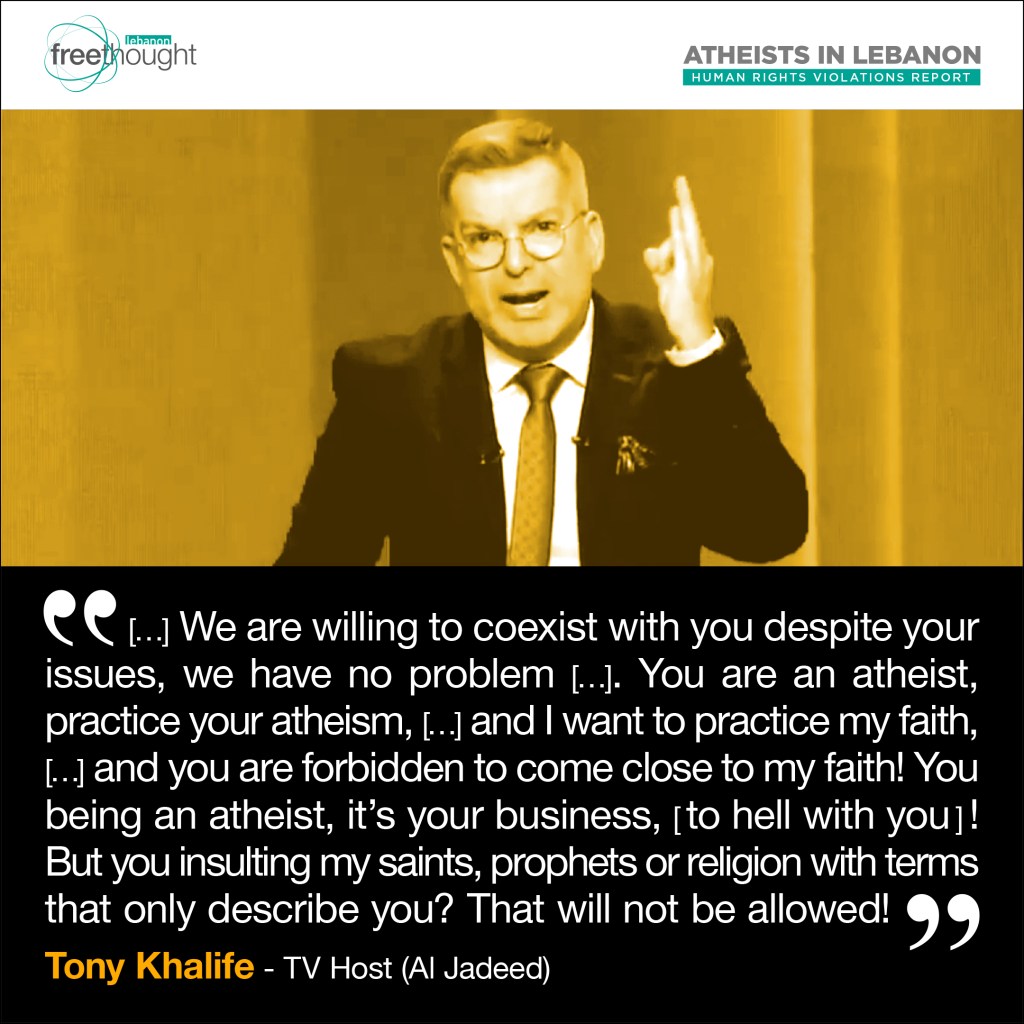 Join us in this live broadcast to discuss the report produced by Freethought Lebanon on the Human Rights Violations that atheists in Lebanon suffer from.