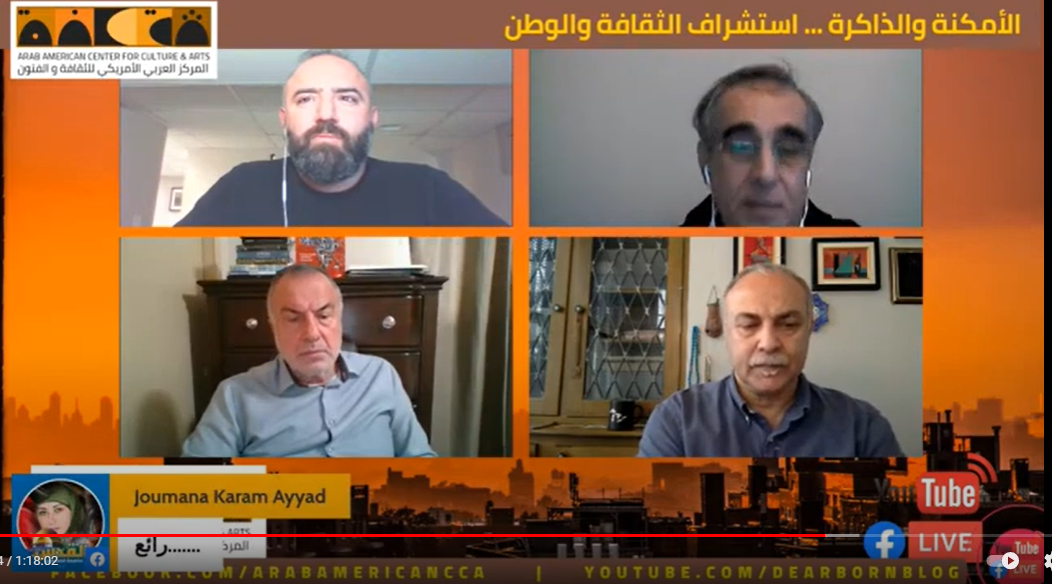 يتشرف المركز العربي الاميركي للثقافة والفنون بدعوتكم إلى أمسية تحت عنوان: الأمكنة والذاكرة إستشراف الثقافة والوطن يشارك فيها: د. علي عجمي د. نبيل الخطيب د. هاني بواردي السيد وسام شرف الدين الزمان: يوم السبت 27 تشرين الثاني (نوفمبر) 2021، الساعة الثانية عشرة ظهرا بتوقيت ديترويت، السابعة مساء بتوقيت بيروت