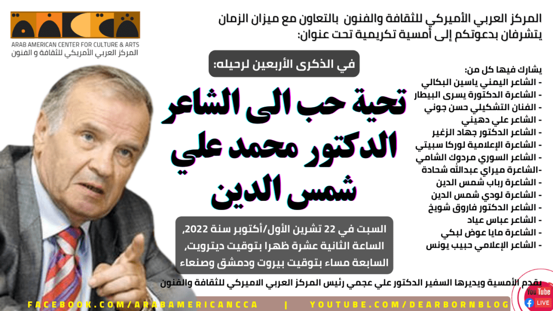 يقدم الأمسية ويديرها السفير الدكتور علي عجمي رئيس المركز العربي الاميركي للثقافة والفنون