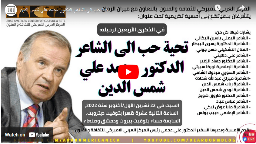 تحية حب الى الشاعر الدكتور محمد علي شمس الدين