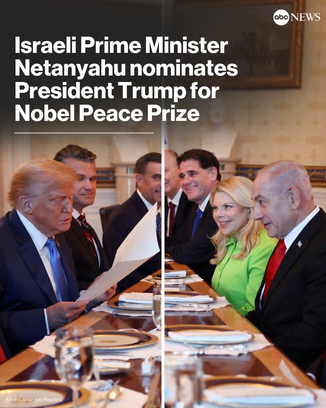 Netanyahu nominates Trump for the Nobel Peace Prize — while Gaza burns, mercenaries kill the hungry, and history repeats.