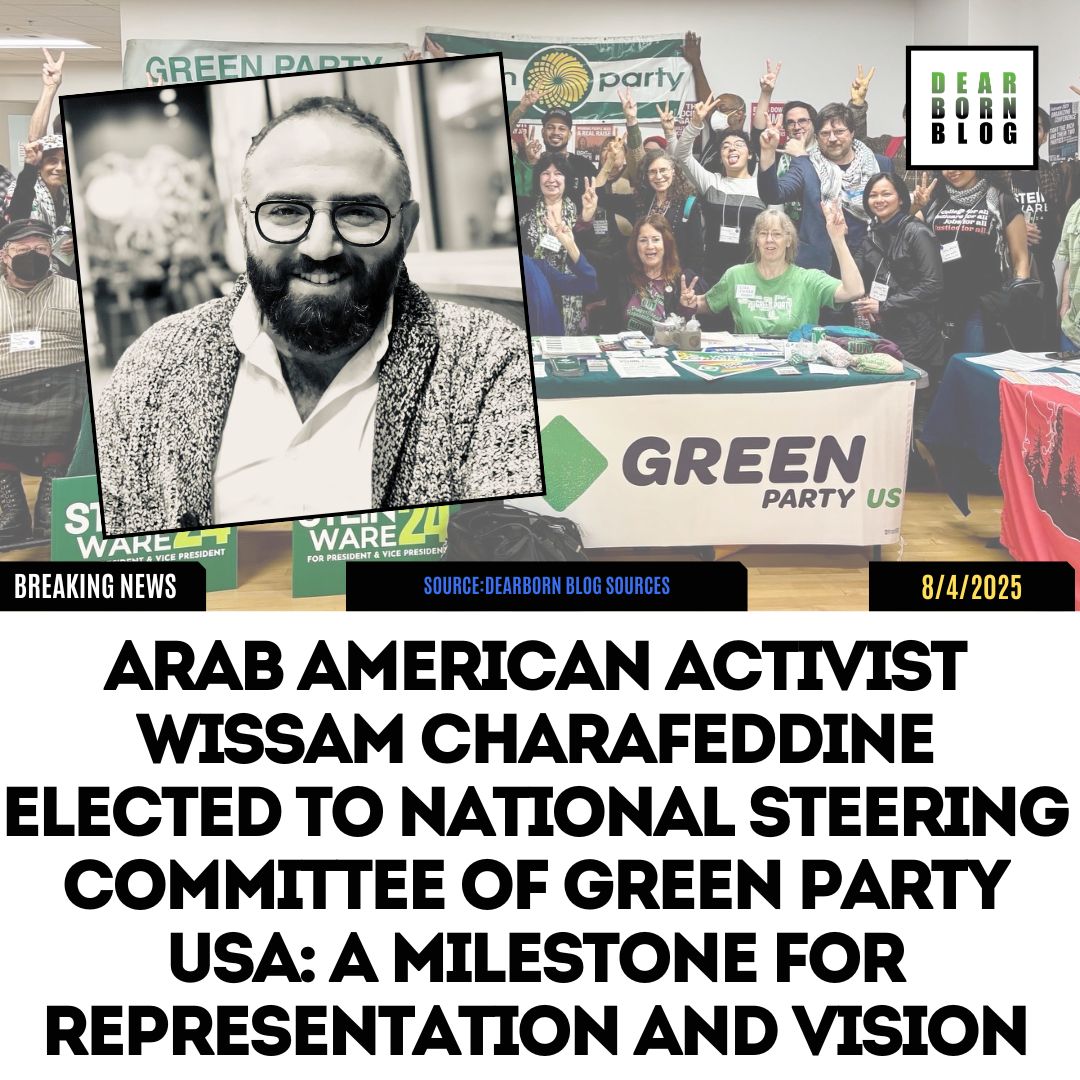 In a historic move that marks a turning point for both the American political landscape and the future of Arab and Muslim American engagement, Wissam Charafeddine, a Dearborn-based educator, activist, and thinker, has been elected to the Steering Committee of the Green Party of the United States (GPUS).