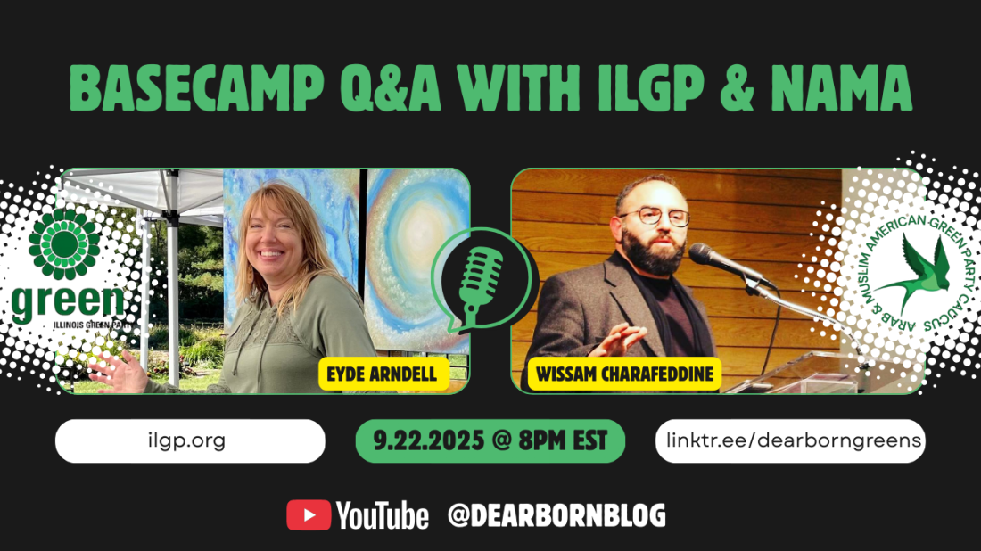[4] YouTube, “Basecamp Q & A with Illinois Green Party and NAMA Caucus” (Dearborn Blog livestream page). YouTube