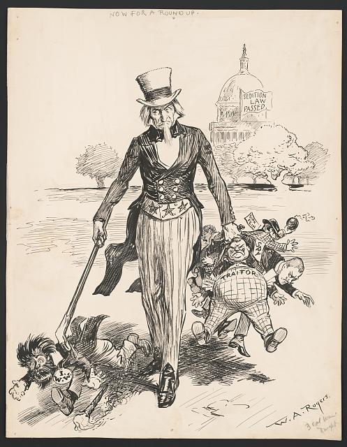 President Wilson’s Department of Justice and Bureau of Immigration created the amended Act of 1918, defining non-citizen anarchists as any “aliens who believe in, advise, advocate, or teach, or who are members of, or affiliated with, any organization, association, society, or group, that believes in, advises, advocates, or teaches: