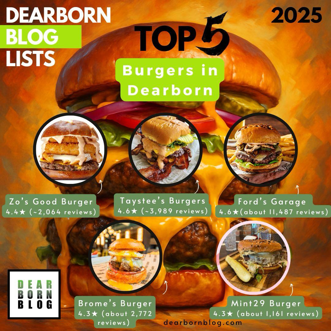 Dearborn doesn’t just “have burgers.” Dearborn debates burgers—late-night, family-night, post-shift, post-prayer, post-protest, post-everything. Based on the Dearborn Blog “Top 5 Burgers in Dearborn (2025)” list, here’s a deeper, sourced guide to the five spots that earned the loudest love—plus what makes each one worth the drive, the line, and the nap afterward.