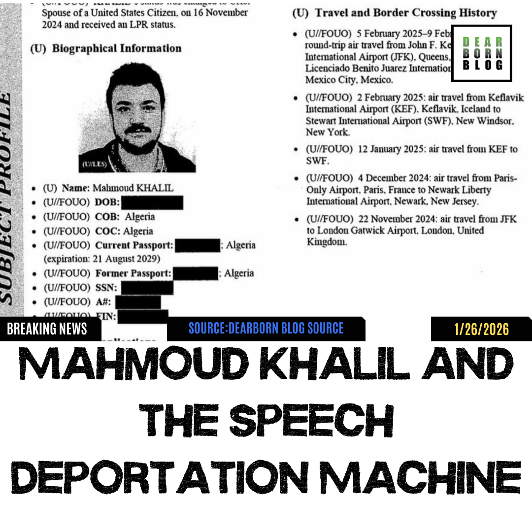 So when the federal government tests a model of “speech-based immigration punishment” on high-profile campus activists, communities like ours will feel it faster and harder than most. Add in the broader reality that Dearborn has been repeatedly targeted by far-right provocateurs chasing viral “anti-Muslim” content, and you get the full picture: the politics of spectacle + the machinery of enforcement.13