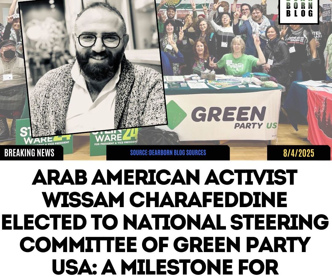 By: Dearborn Blog StaffDate: 4 August 2025 In a historic move that marks a turning point for both the American political landscape and the future of Arab and Muslim American engagement, Wissam Charafeddine, a Dearborn-based educator, activist, and thinker, has been elected to the Steering Committee of the Green Party of the United States (GPUS). ...
