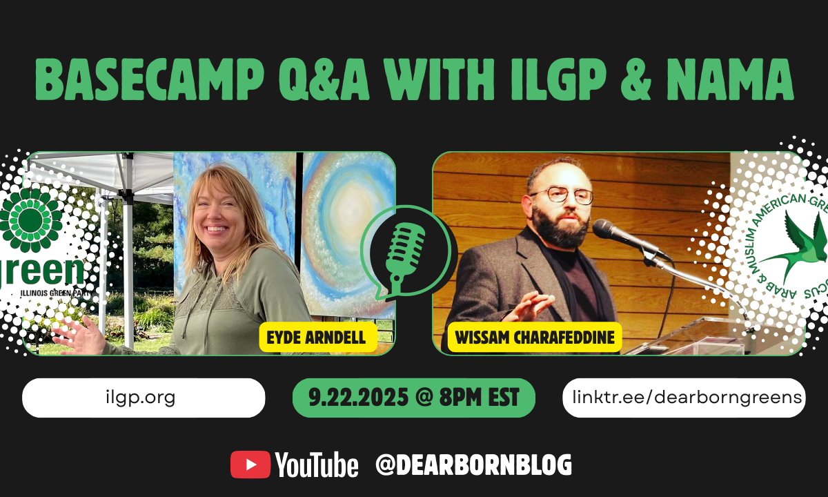 On September 22, 2025, organizers from the Illinois Green Party (ILGP) and the Arab & Muslim American Green Party Caucus (NAMA) went live on YouTube to demo a simple idea with big consequences: if Greens want to scale campaigns and committees without burning out, get off the hamster wheel of scattered chats and run the work in Basecamp. In a one-hour Q&A hosted by Dearborn Blog, Eyde Arndell (ILGP) and Wissam Charafeddine (NAMA) showed, click-by-click, how message boards, task lists, check-ins, and “Hill Charts” make transparency normal and chaos optional. Watch the full session on @DearbornBlog and grab the starter links at ilgp.org and linktr.ee/dearborngreens.