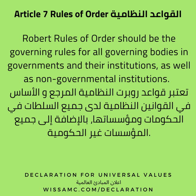 From Universal Declaration of Human Values – Article 7 – Rules of Order