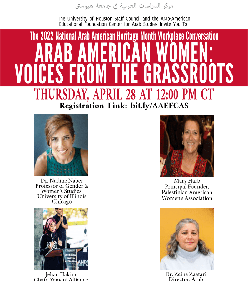 2022 National Arab American Heritage Month Webinar “Arab American Women: Voices from the Grassroots”