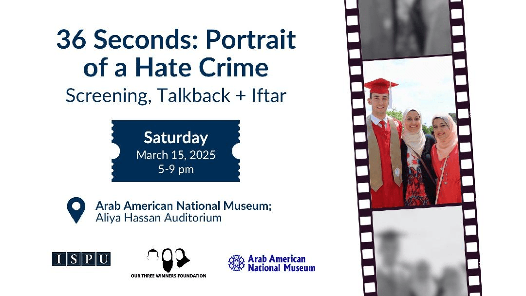 Greetings and Ramadan Kareem, The Arab American National Museum (AANM) and Institute for Social Policy and Understanding (ISPU) invite you to our next Cinema Nights at the Museum, which will take place Saturday, March 15, 2025. We are pleased to screen the powerful, sobering documentary, “36 Seconds: Portrait of a Hate Crime” directed by Tarek ...