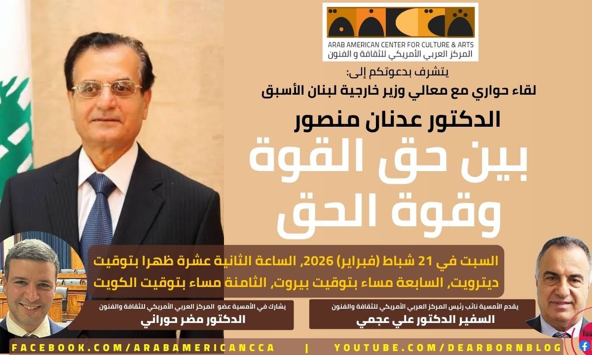 https://www.youtube.com/watch?v=nBSwa3RLNEQ Between the Right of Power and the Power of Right: Insights from Former Lebanese Foreign Minister Dr. Adnan Mansour Welcome back to the Dearborn Blog! In our latest episode, hosted in the cultural oasis of the Arab American Center for Culture and Arts, we had the distinct honor of welcoming a heavyweight in Middle ...