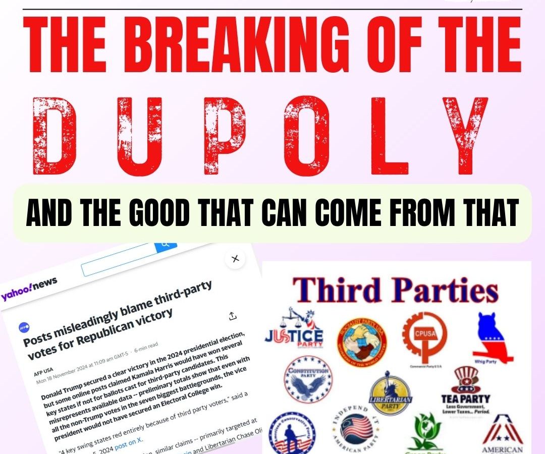 https://www.instagram.com/p/DCjySRcOD6_/?utm_source=ig_web_button_share_sheet&igsh=ZDNlZDc0MzIxNw== The Fruits of Breaking the Duopoly The United States has long been dominated by a two-party political system, often referred to as the duopoly. This system, spearheaded by Democrats and Republicans, has stifled alternative voices, narrowed the scope of political discourse, and prioritized party interests over the will of the people. Breaking free from ...
